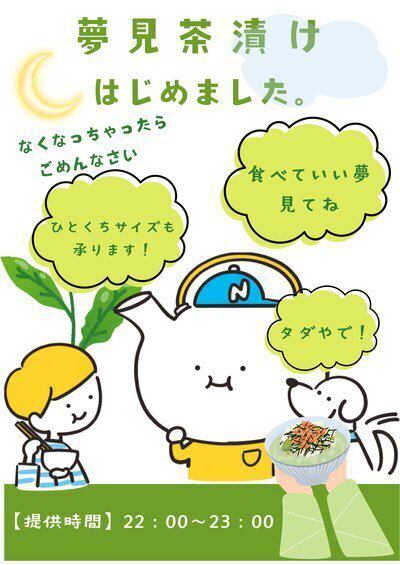 ラウンジにて22:00~23:00 「夢見茶漬け」の提供を始めました!